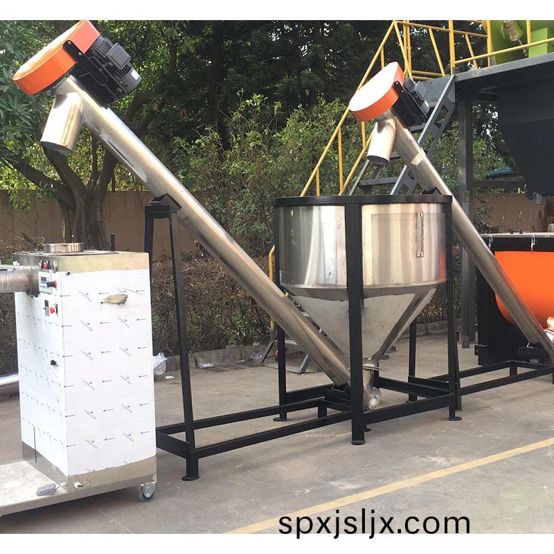將PET塑料(liao)缾料輸送至脫標機入料口,脫標機身前部有一段螺鏇推送,將......
